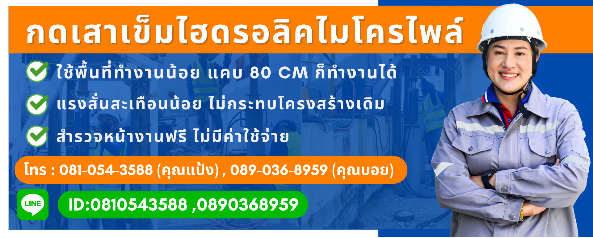 เสริมเสาเข็มไมโครไพล์ด้วยระบบไฮดรอลิก โดยการทำงานลักษณะนี้เหมาะสำหรับพื้นที่แคบ ปั้นจั่นไม่สามารถเข้าทำงานได้ ไม่มีเสียงรบกวน แรงสั่นสะเทือนน้อย