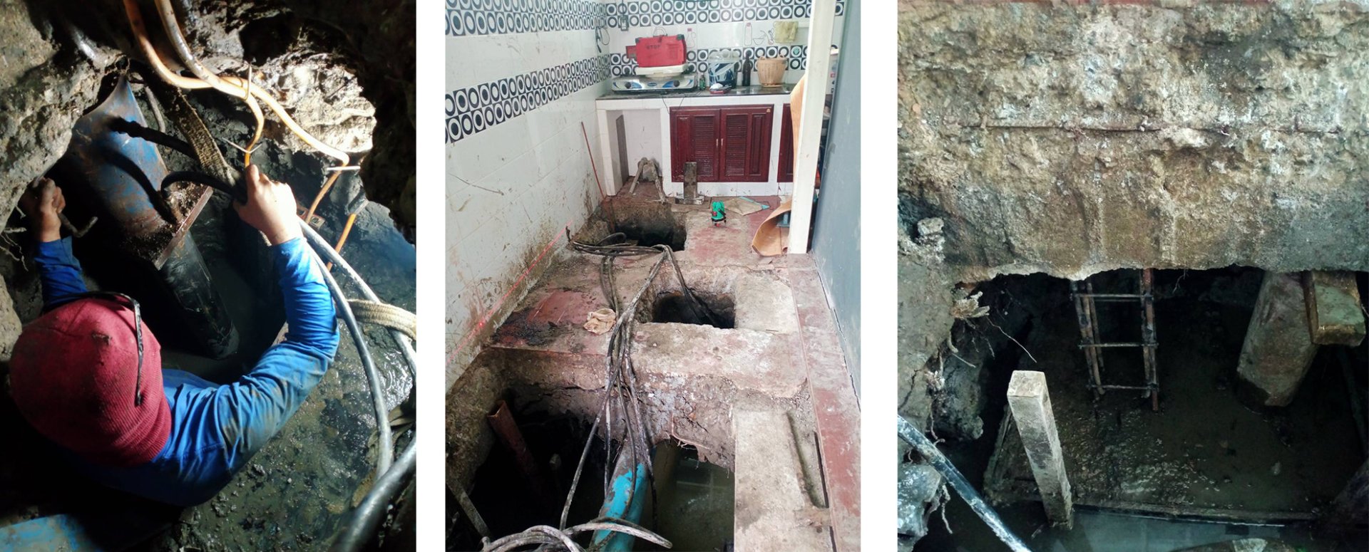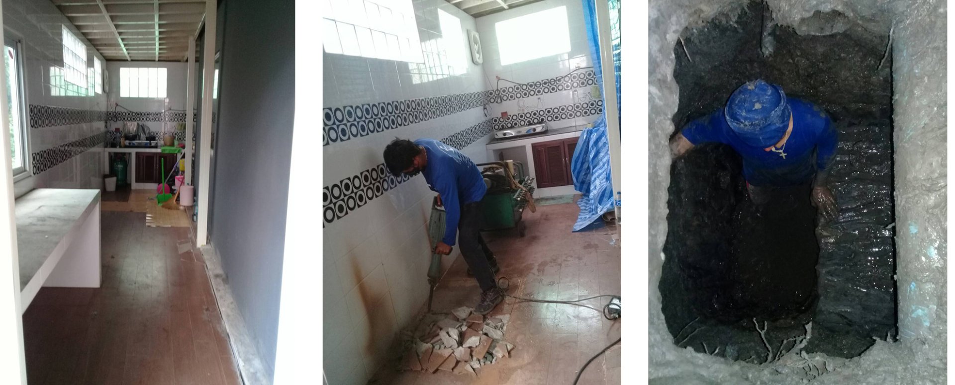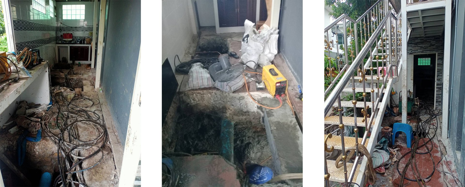 1.ขุดเจาะบริเวณที่จะกดเข็ม Micropile จำนวน 8 ต้น ลึกลงไปใต้คานคอดิน 1.50 เมตร กว้าง 80 ซม.× ยาว 80ซม.