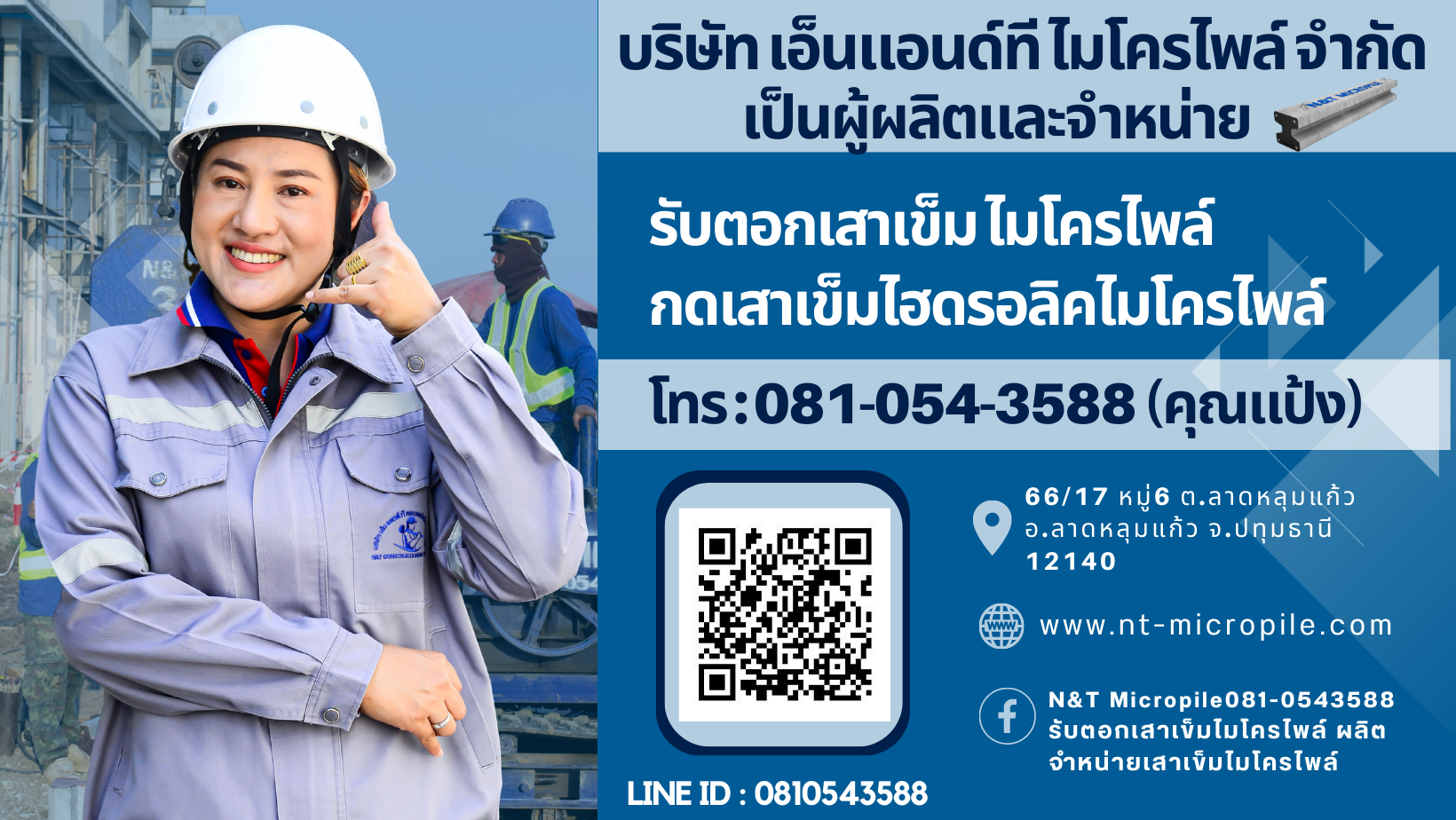 บริษัท เอ็นแอนด์ที ไมโครไพล์ จำกัด เป็นผู้ผลิตพร้อมตอกเสาเข็มไมโครไพล์ เสาเข็มที่มีคุณภาพได้มาตรฐาน ผ่านการรับรองจากวิศวกรและการทดสอบความสามารถในการรับน้ำหนักหนัก ความปลอดภัยโดยวิธีการ Dynamic Load Test สามารถรองรับน้ำหนักความปลอดภัยได้ถึง 15 – 45 ตัน แข็งแรง ได้มาตราฐาน ตอกแล้วไม่ทรุด
