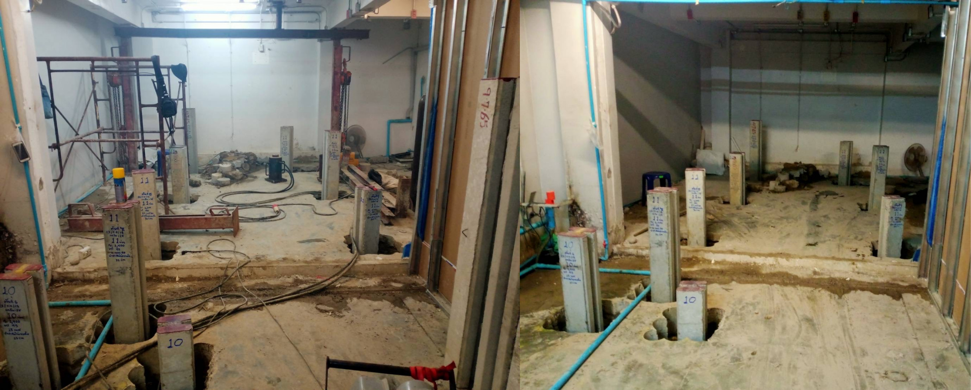 บริษัท เอ็นแอนด์ที ไมโครไพล์ จำกัด กดเสาเข็มไฮดรอลิคไมโครไพล์ เสริมฐานรากในอาคาร สำหรับพื้นที่ ปั้นจั่นเข้าตอกไม่ได้ เสียงเบา แรงสั่นสะเทือนน้อย ไม่กระทบโครงสร้างเดิม กดลึกถึงดินดาน