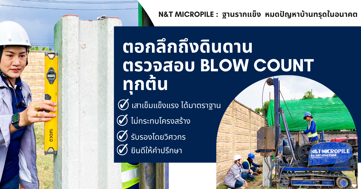- ตอกเสาเข็มไมโครไพล์ สามารถตอกได้ลึก 16-21 เมตร เช็ค blow count ทุกต้น