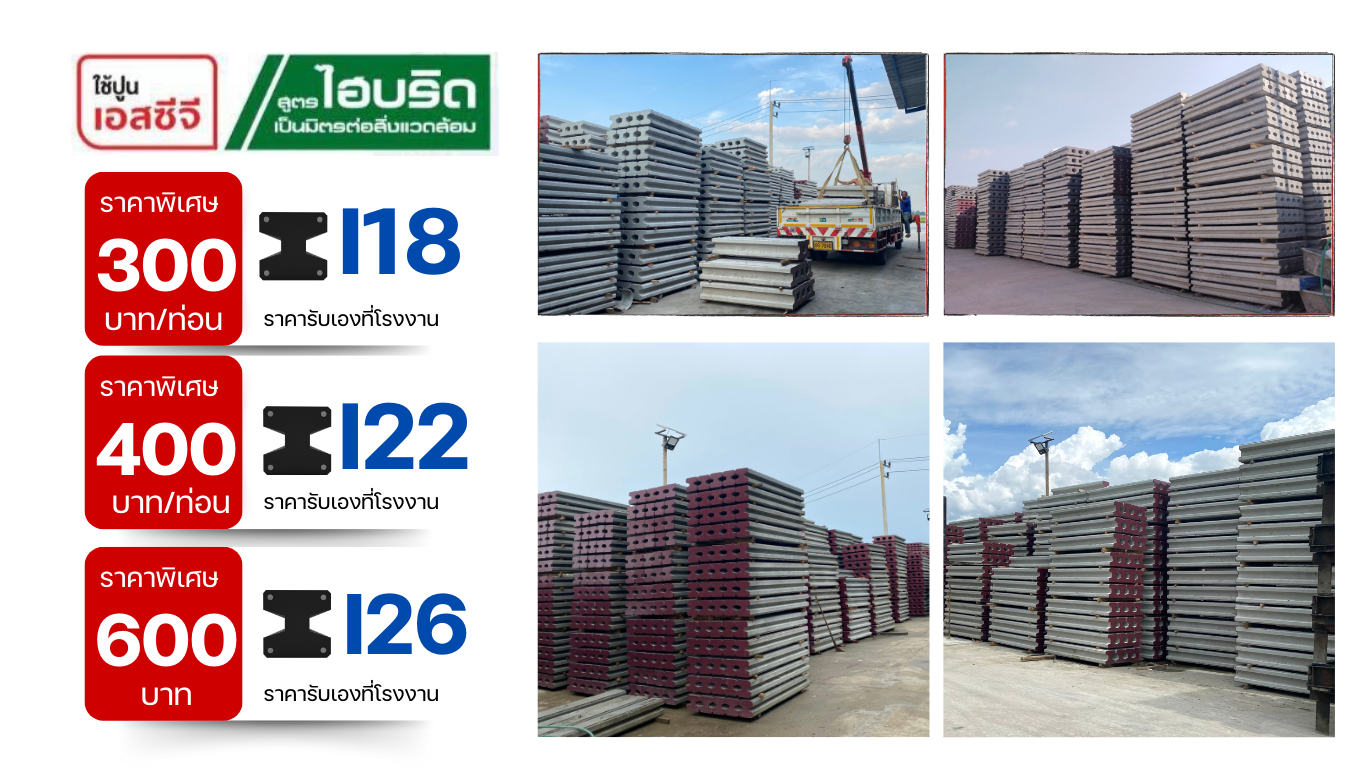 เสาเข็มไมโครไพล์ i18 cm x 18 cm x 150 cm ราคาเริ่มต้น 300 บาท/ ท่อน
